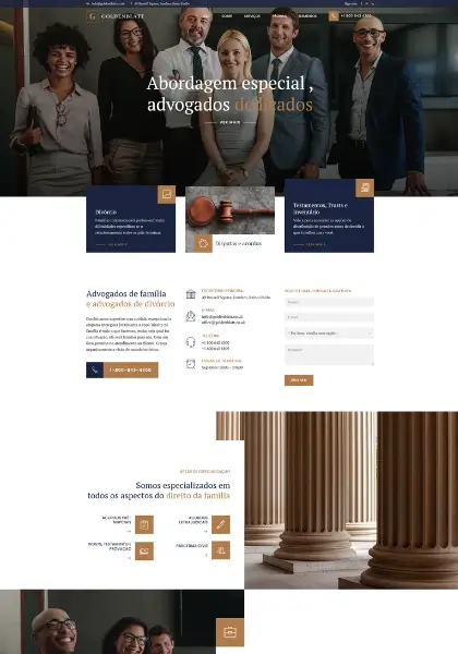 Alteramos cores, textos, logotipo, telefone e endereço para refletir a identidade do seu escritório.